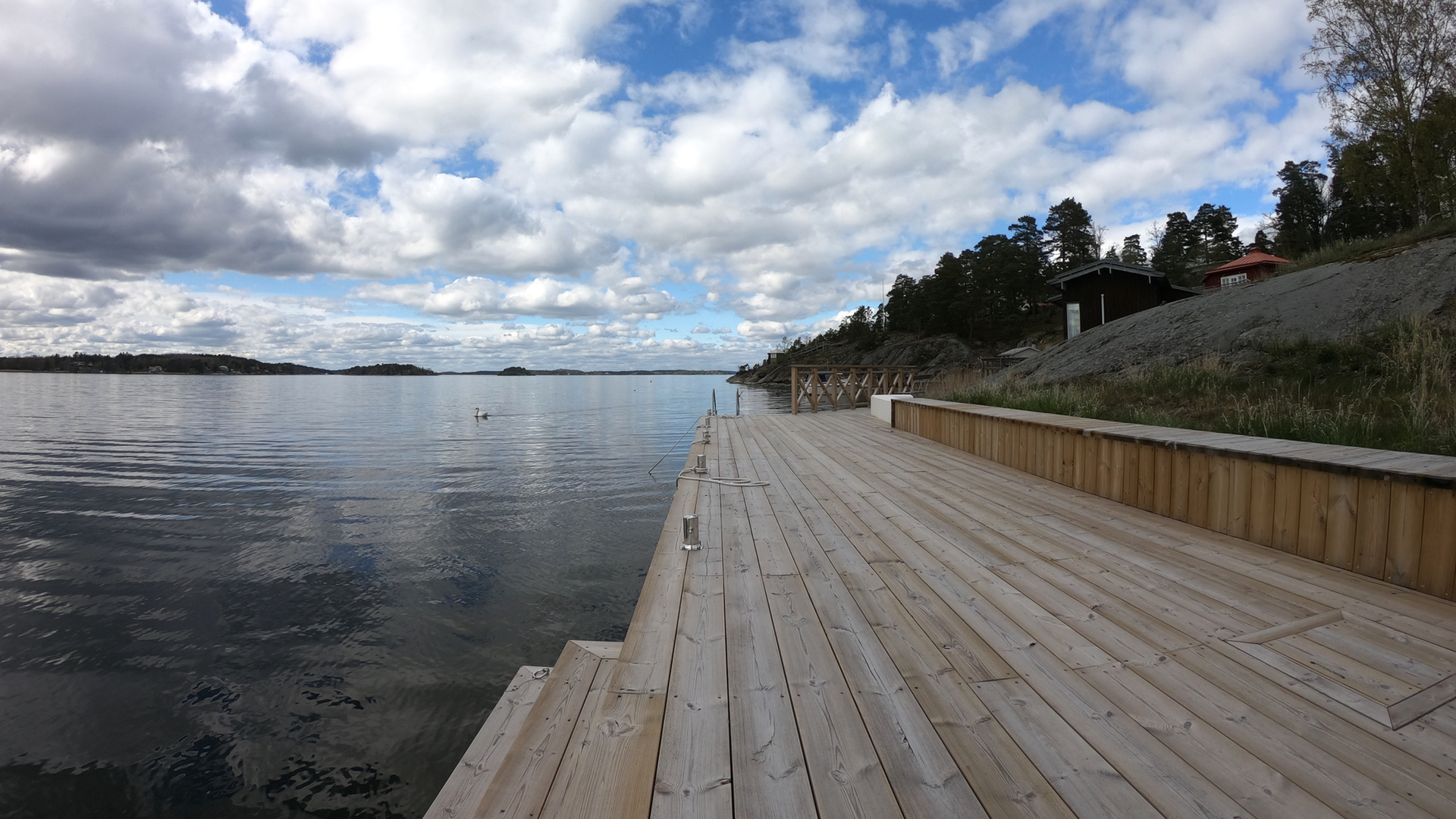 Här finns faciliteter som bastuhus, brygga, kanoter, vattenskoter och yogasal.